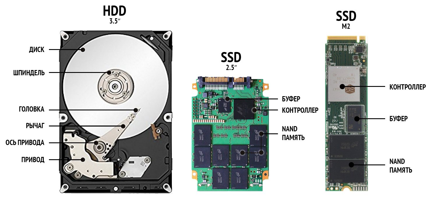 Традиционный накопитель или как его принято называть ПЗУ (постоянное запоминающее устройство) необходим для хранения данных даже после полного отключения питания. В отличие от ОЗУ (оперативного запоминающего устройства) или RAM, хранящиеся в памяти данные не стираются после выключения компьютера.