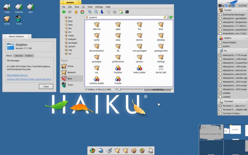 Haiku находится на стадии Beta 3 (на момент написания статьи). Она пока ещё недостаточно стабильна.