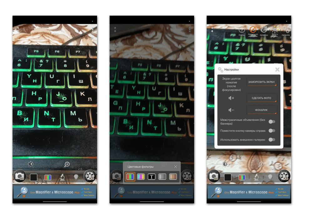 «Лупа и микроскоп» — более интересное и функциональное приложение по сравнению с предыдущим вариантом. Правда и взаимодействовать с ним будет чуть сложнее. Вот инструкция: