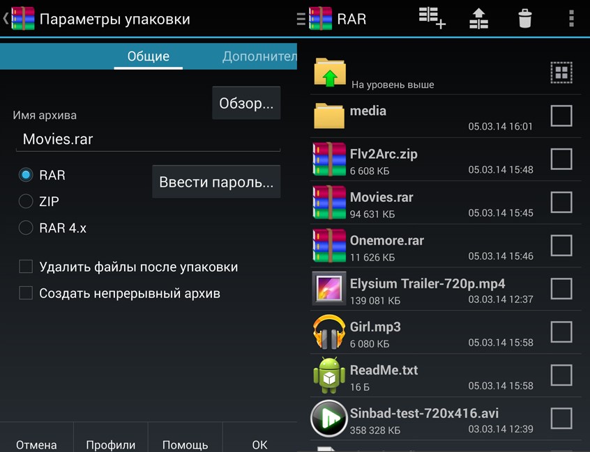 Если при распаковке заархивированных данных в результате на смартфоне оказываются файлы, которые предварительно поместили в архив, то создать его можно несколькими способами: