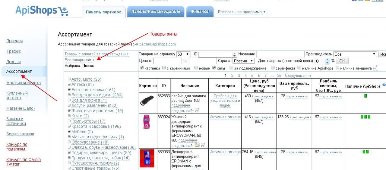 Как видите товаров очень много. Чтобы вам было немного проще, можно выбирать среди ТОВАРОВ ХИТОВ, и пользоваться тематическими рубриками.