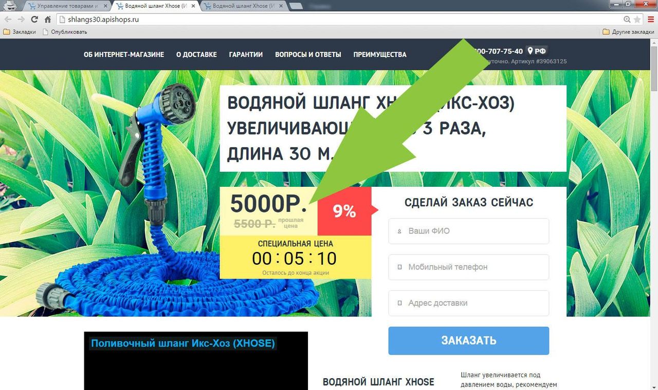 В качестве примера я выбираю «ВОДЯНОЙ ШЛАНГ XHOSE УВЕЛИЧИВАЮЩИЙСЯ В 3 РАЗА, ДЛИНА 30 М»