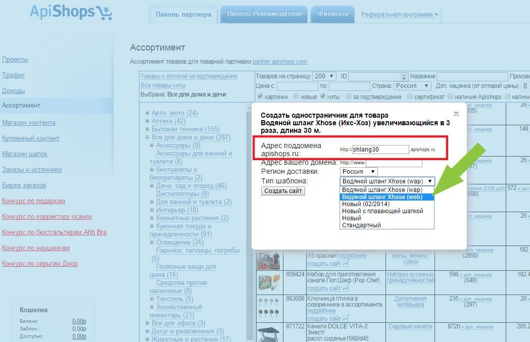 После того как вы зашли в личный кабинет, Вы можете создать одностраничный интернет магазин буквально в 2 клика. Сначала вам необходимо посмотреть весь ассортимент, и выбрать для себя товар который вы будете продавать через Одноклассники.