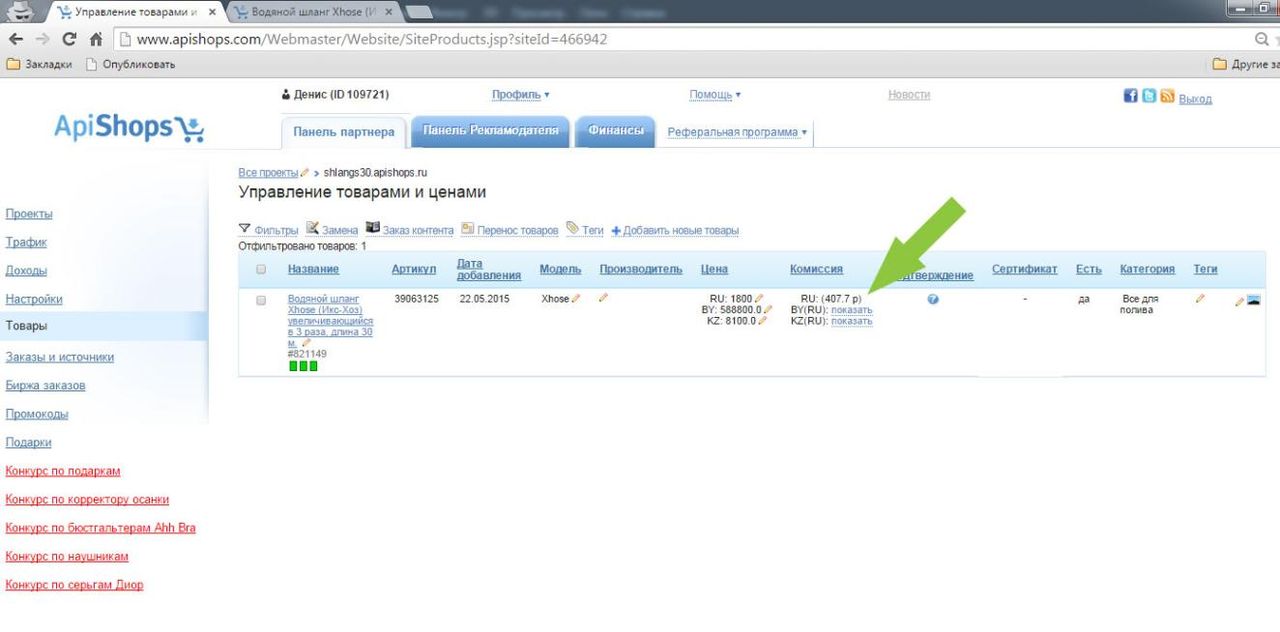 Более того, Вы сами можете устанавливать цену для товара. На практике это выглядит так: Если продавать товар за 1800 рублей, то с каждой продажи Вам начисляется 407 рублей (статистика будет отображаться на вкладке ДОХОДЫ и ЗАКАЗЫ ИСТОЧНИКИ).