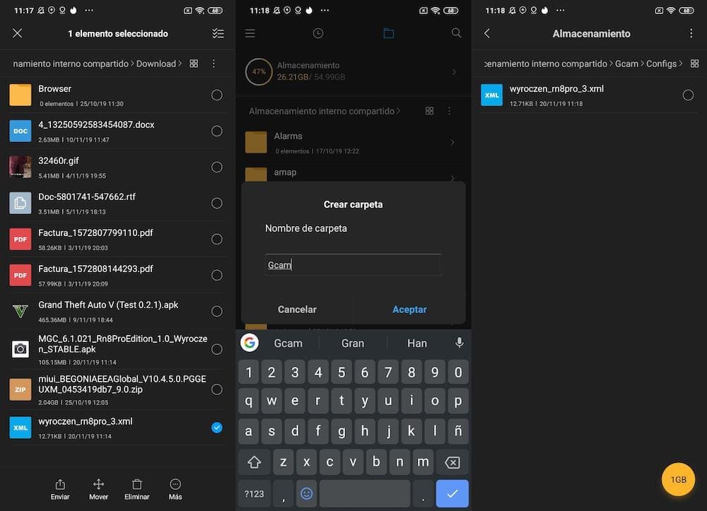 Следующее, что нам нужно сделать, это создать еще одну папку с именем Configs в GCam, чтобы переместить файл конфигурации, который мы ранее загрузили. Теперь нам просто нужно перейти в папку Downloads и скопировать файл uzai-illusions-of-colors-for-7.3.xml, чтобы сразу вставить его в только что созданную папку.