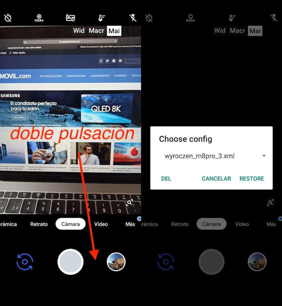 Последним шагом будет применение конфигурации файла XML через приложение GCam. Для этого нам нужно будет дважды щелкнуть в какой-то пустой части интерфейса, как мы видим на изображении. Наконец, мы выберем XML-файл и нажмем ОК, чтобы восстановление прошло успешно. Мы рекомендуем перезапустить систему, чтобы избежать конфликтов с конфигурацией.