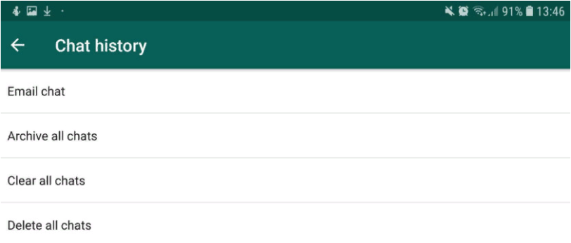 - Нажать на пункт «История чата» и прикоснуться к элементу «Экспорт чата».