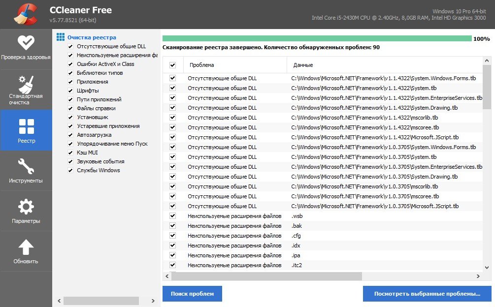 Эта сторонняя утилита получила массовое распространение, поскольку очень тщательно проверяет базу данных операционной системы Windows. Мусор не только быстро находится, но и также быстро удаляется.