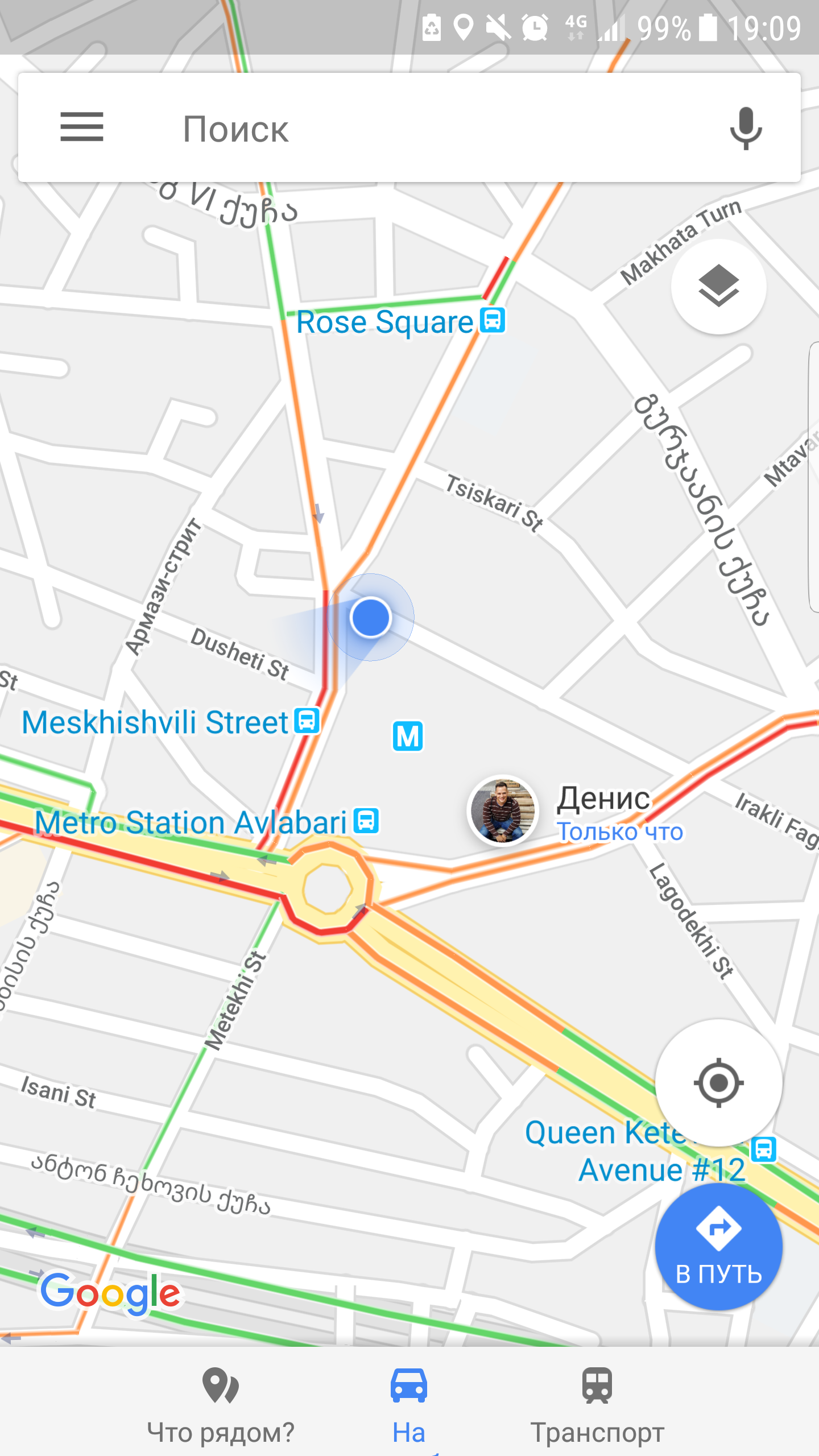 - Зайдя в приложение, нажмите на свое местоположение , обозначенное синей точкой.