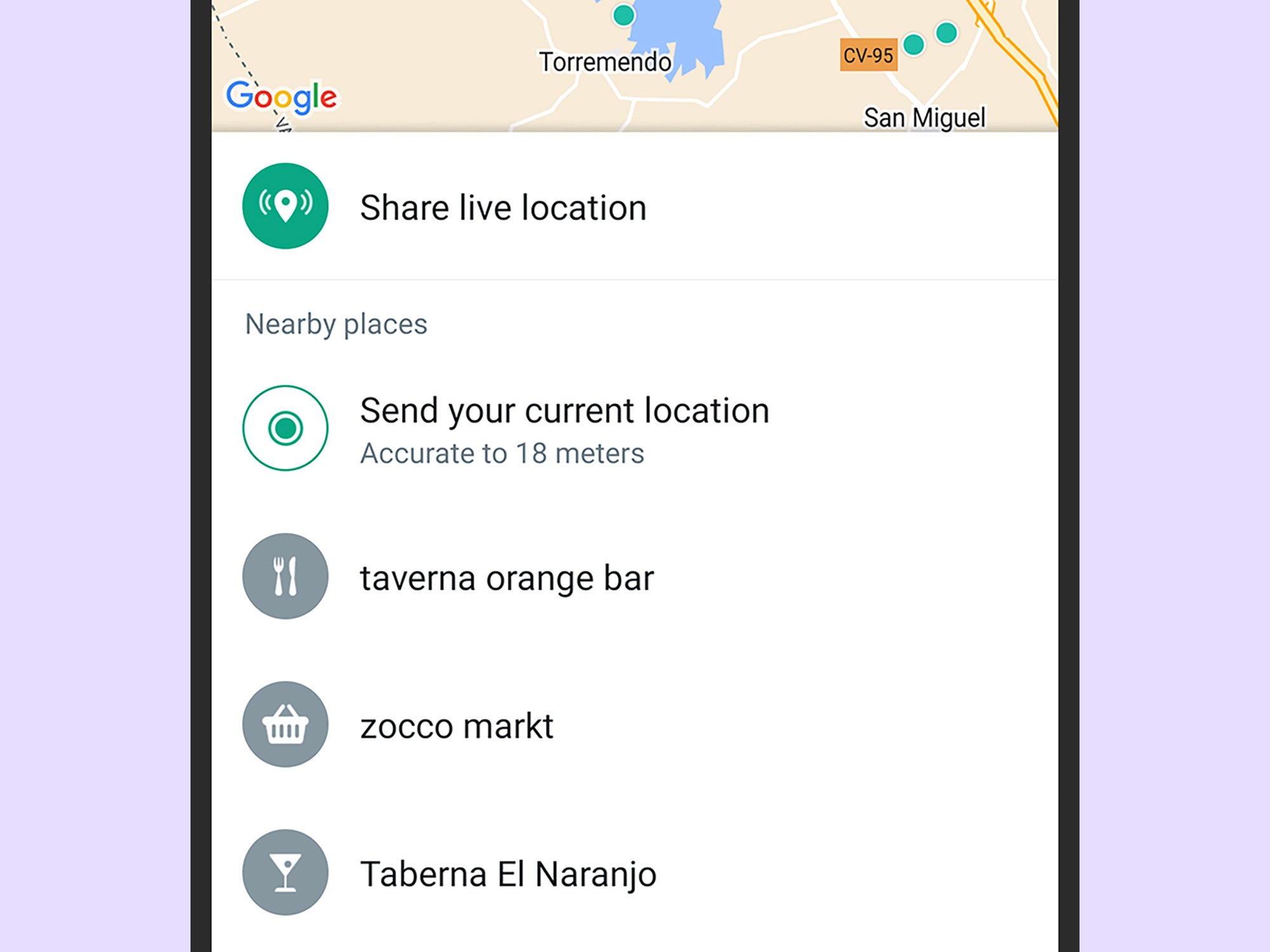 Используйте Google Maps, чтобы поделиться своим прямое местоположение с друзьями.