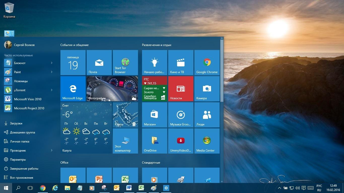 - Более традиционное меню Пуск — симбиоз решений из 7 и 8.1. Оно стало снова открываться не на весь экран, а только на малую его часть, но возможность закреплять живые плитки приложений и иконки традиционных x86-программ сохранилась.
