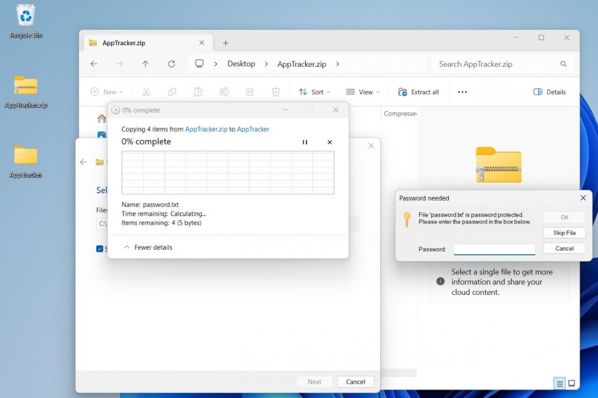 Проводник поддерживает ZIP-файлы, защищенные паролем