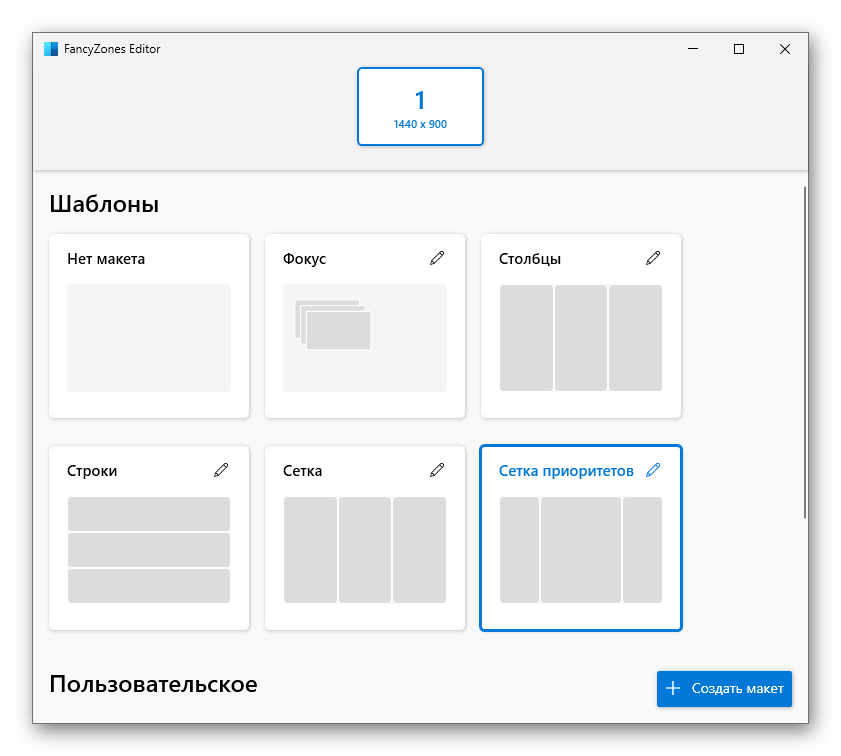 Она позволяет создать различные зоны на мониторе для размещения окон. В FancyZones имеется несколько готовых макетов, а также здесь можно создать и собственные шаблоны.