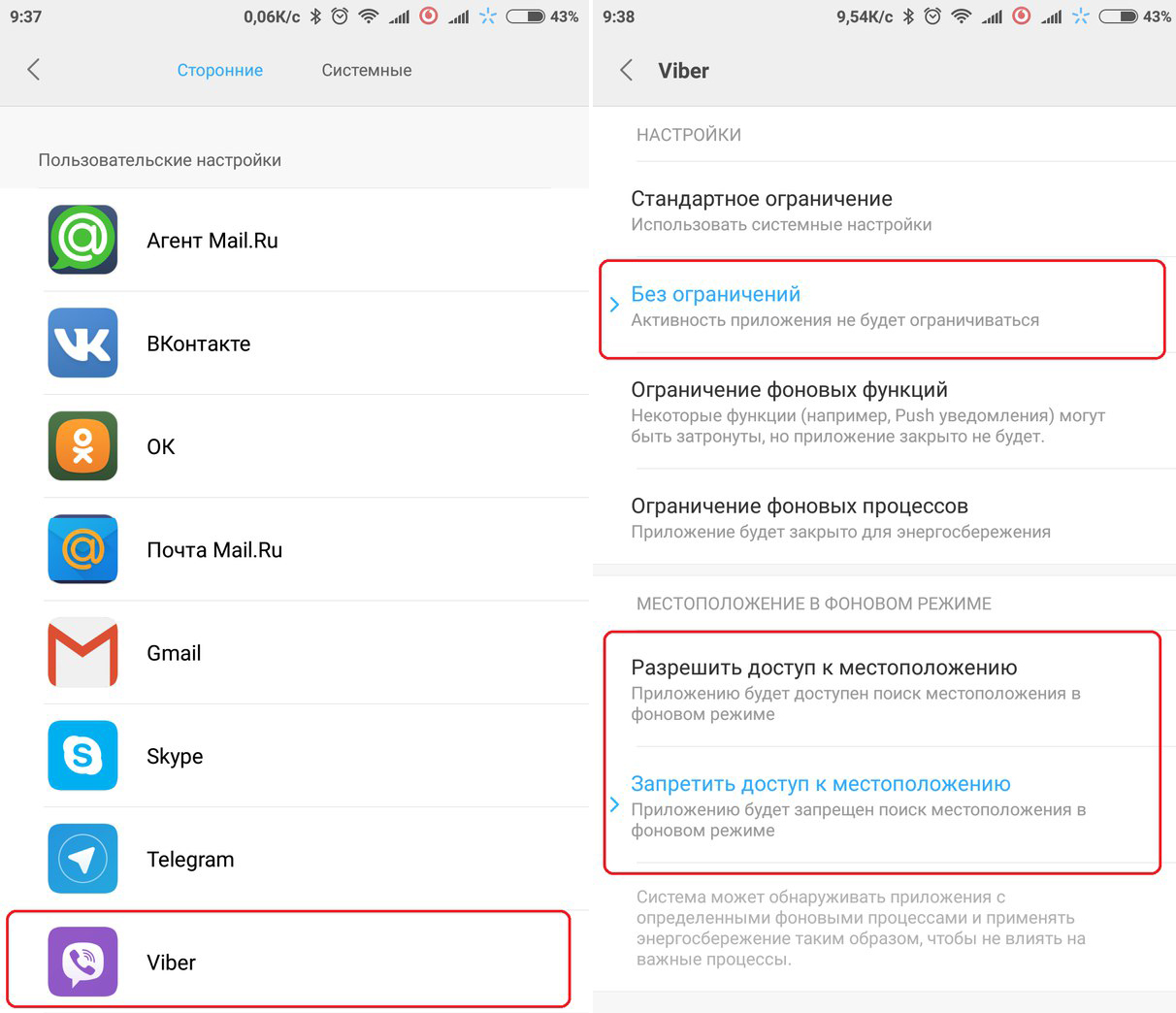 - Мягкое ограничение – приложение может работать в фоне, но оповещения из него не приходят.