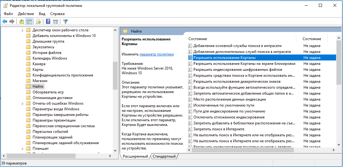 Наиболее простой вариант отключить Cortana — это воспользоваться редактором групповой политики.