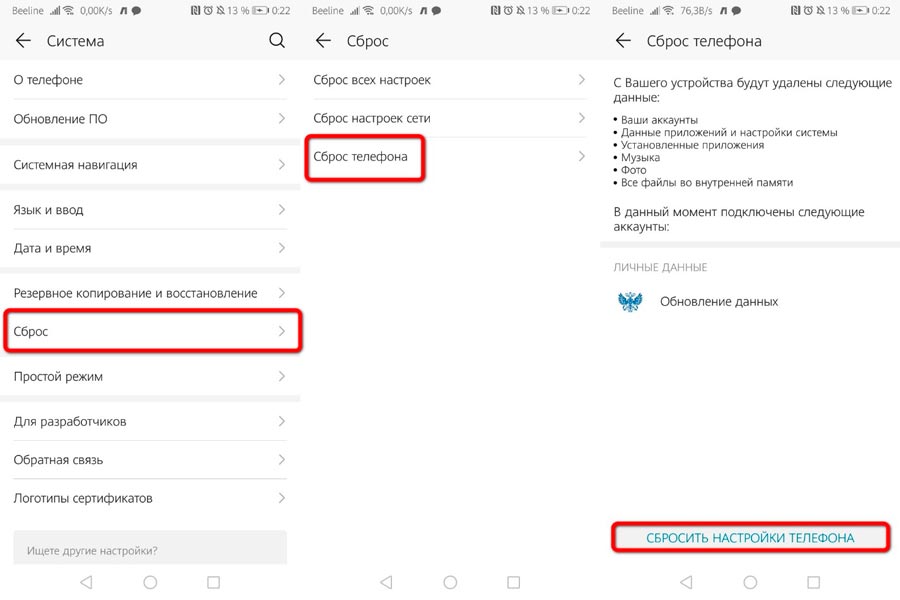 Девайс будет перезагружен. Операция займет 5-10 минут. Рекомендуется перед этим сделать резервную копию данных, чтобы сохранить контакты и сообщения.