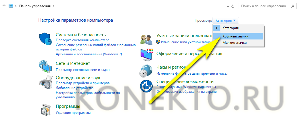 В правом верхнем меню «Категория» переключиться на «Крупные значки».