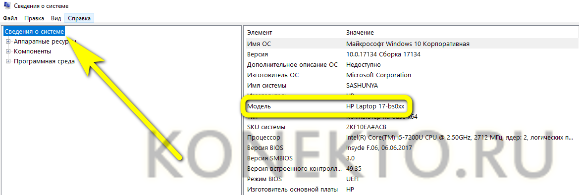 На вкладке с тем же названием найти строку «Модель» — здесь и содержится необходимая информация.