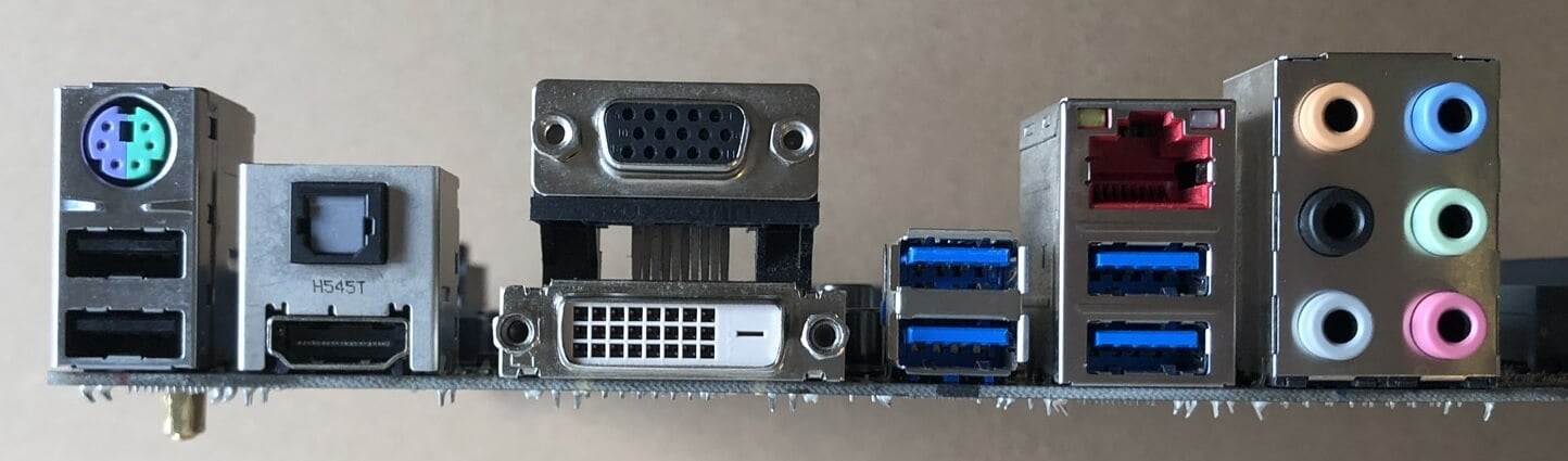- Разъём VGA – для бюджетных или старых мониторов (верхний в центре)