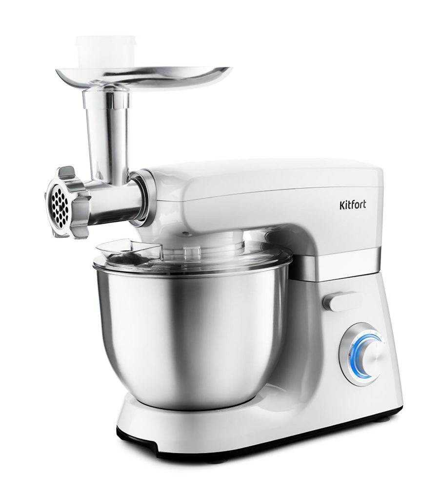 Очередная вариация планетарных миксеров линейки КТ. Излишки мощности (1200 Вт) позволили производителям расширить функционал модели Kitfort КТ-1398 за счет мясорубки. Разнокалиберные сита позволяют манипулировать с консистенцией фарша, вплоть до пастообразного состояния. В комплект входят насадки для колбас и кебе. Получив признание у домашних колбасников, кухонный комбайн не утратил базового функционала.