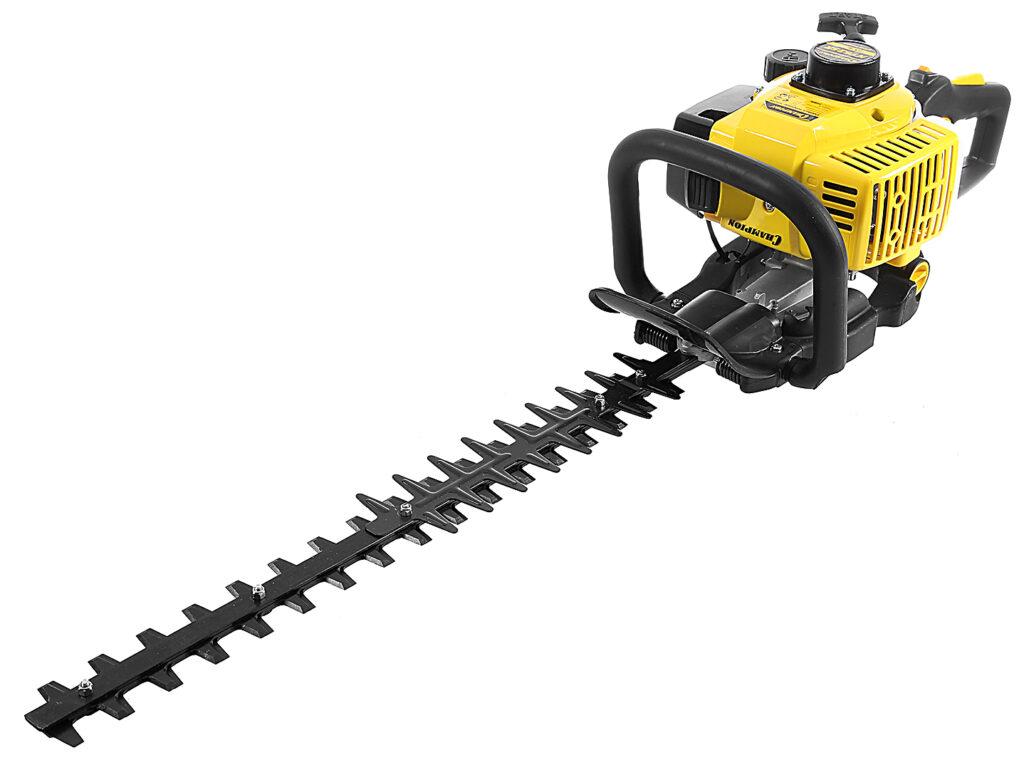 Фаворитом рейтинга лучших бензиновых кусторезов стал «Чемпион» HT625R. Он укомплектован двухтактным двигателем 1 л.с., который приводит в движение длинное двустороннее лезвие. Цилиндр защищен от коррозии хромированным покрытием. Запускается с помощью электронного зажигания. Топливный бак изготовлен из полупрозрачного ударопрочного пластика, что упрощает контроль над количеством бензина.