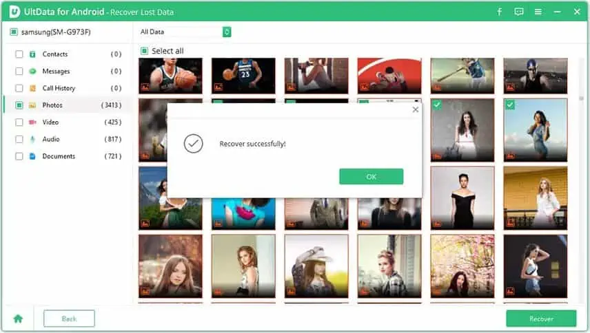 После завершения процесса сканирования вы можете просмотреть файлы и нажать кнопку «Recover» кнопка. Ваши файлы будут восстановлены в течение нескольких секунд без рутирования телефона Android.
