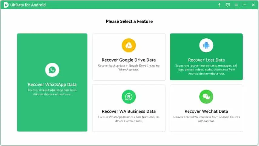 Во-первых, вы должны загрузить и запустить Tenorshare UltData для Android на своем ПК. После этого нажмите кнопку «Восстановление потерянных данных».