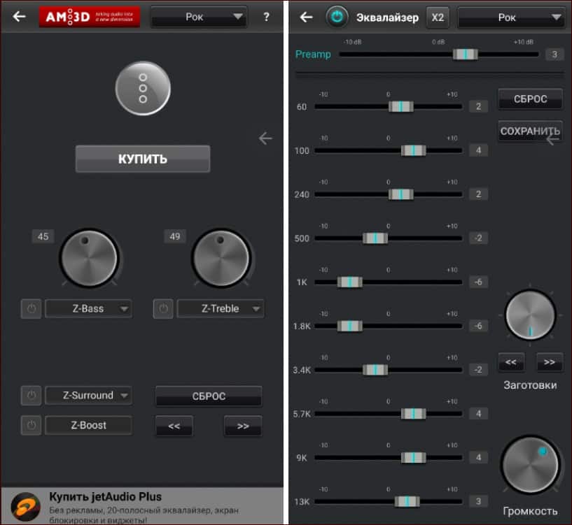 - 10-полосный эквалайзер (в версии Pro — 20-полосный);
