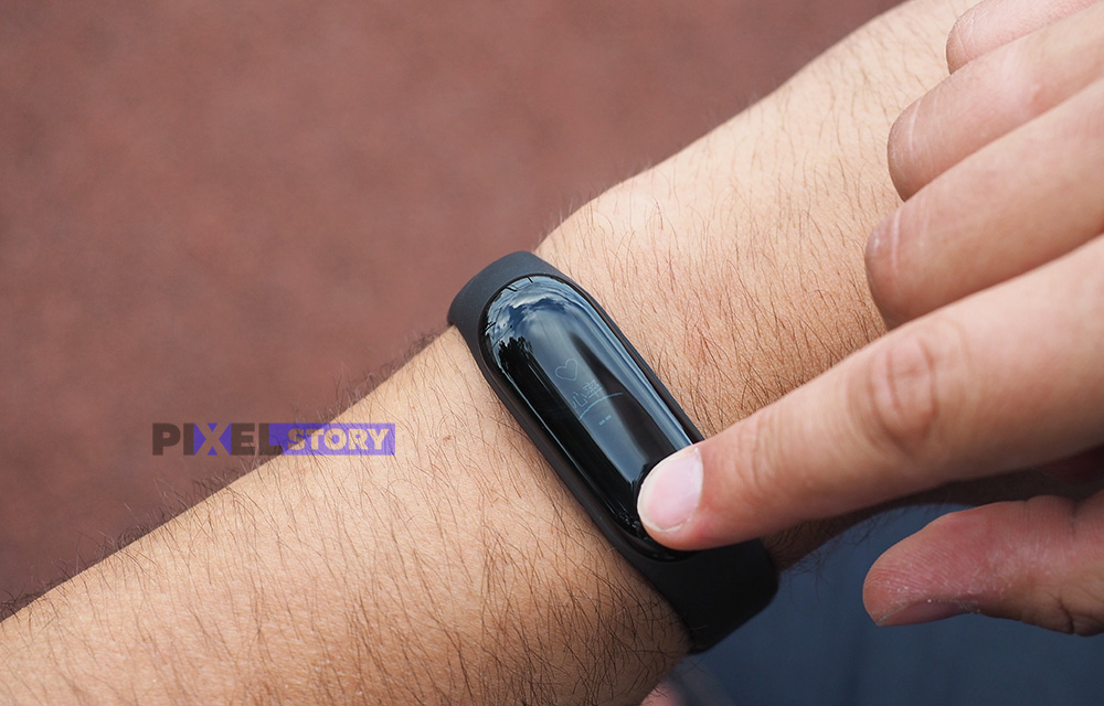 На передней панели Mi Band 3 по-прежнему расположен дисплей и сенсорная кнопка, которая используется для выбора элементов в меню и возврата на предыдущий экран. На тыльной стороне находится оптический пульсометр и логотип бренда.