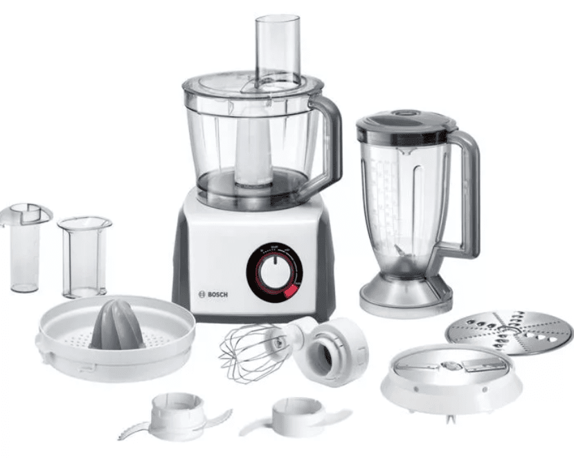 Bosch MCM 62020 собирается проще простого, а после можно приступать к работе. В комплекте с комбайном идет диск-терка, которая помогает справиться быстрее с большим объемом. Корпус и чаша из пластика, кстати, радует объем чаши (3,9 л). Модель измельчает практически все, в комплекте есть и соковыжималка для цитрусовых, а любители капусты оценят терку-шинковку.