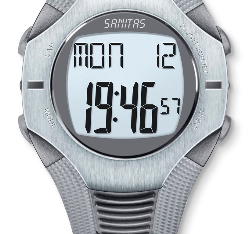 Обладает влагозащитными свойствами, имеет множество дополнительных функций (подсветка, звуковые и световые сигналы, дата и время, фиксация данных, регулировка счетчика кругов).