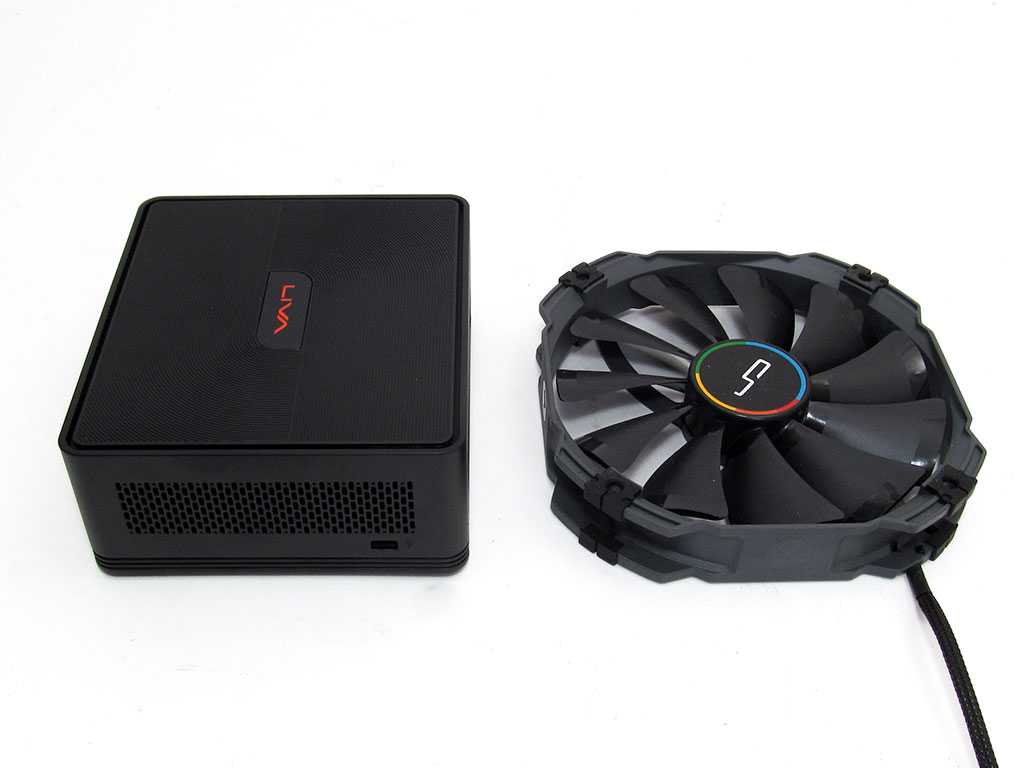 Здесь мы включили стандартный 140-миллиметровый вентилятор корпуса, чтобы показать LIVA Z2, который имеет размеры 13,2 х 11,8 х 5,6 (см). Таким образом, в то время как Z2 немного больше, чем предыдущие модели, этот более крупный размер позволяет использовать один отсек для жестких дисков 2,5″, что обеспечивает гораздо более дешевое расширение памяти, чем слот M.2 на предыдущем поколении модулей LIVA Z.