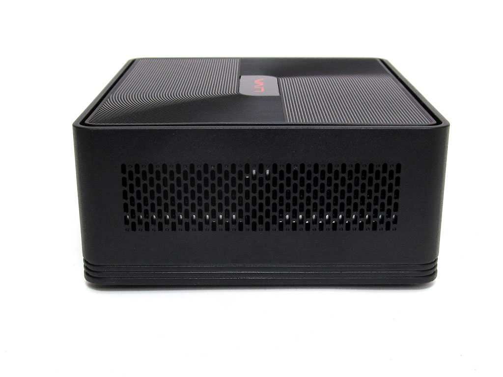 Взглянув на фронтальную часть, пользователи будут рады видеть три порта USB 3.1 Gen1 Type-A и порт USB 3.1 Gen1 Type-C. Здесь также присутствует разъем для наушников и кнопка питания, при этом кнопка имеет белый светодиод. Большое вентиляционное отверстие присутствует с левой стороны для улучшения воздушного потока, что хорошо, поскольку эта конкретная модель охлаждается пассивно.