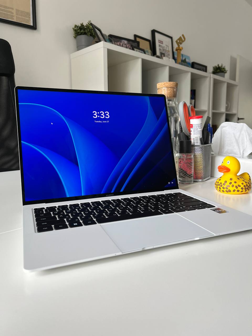 Также в ноутбуке установлено 4 микрофона Huawei Sound. Звук четкий, громкий. Веб-камера с разрешением 720р не дает соответствующей статусу ноутбука картинки. Но ее слабость компенсируется алгоритмами ИИ, позволяющими настроить фон и зрительный контакт с пользователем.