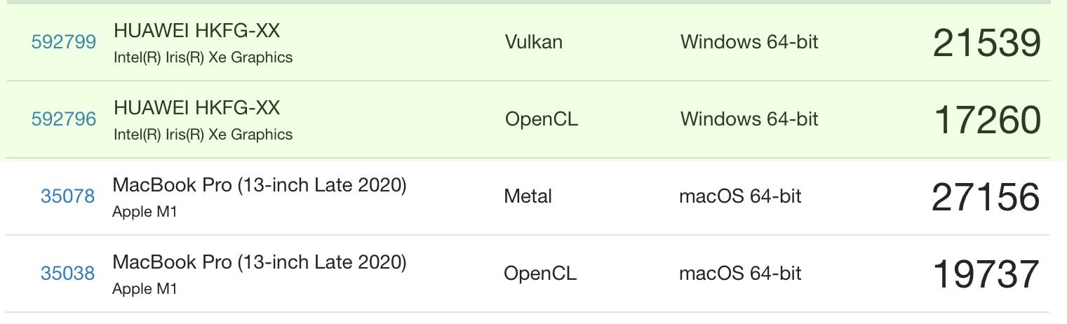 Ноутбук MateBook 14s 2023 построен на базе современного процессора 13-го поколения Intel i7-13700H – это очень производительный чип, но в то же время обладающий неплохой энергоэффективностью. В тестах GeeckBench ноутбук выдаёт ожидаемо высокие показатели, ниже сравнение с ноутбуком на базе Apple M1: