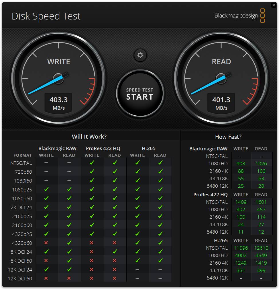 USB в целом также выдают хорошие показатели скорости, особенно если использовать Thunderbolt диск: