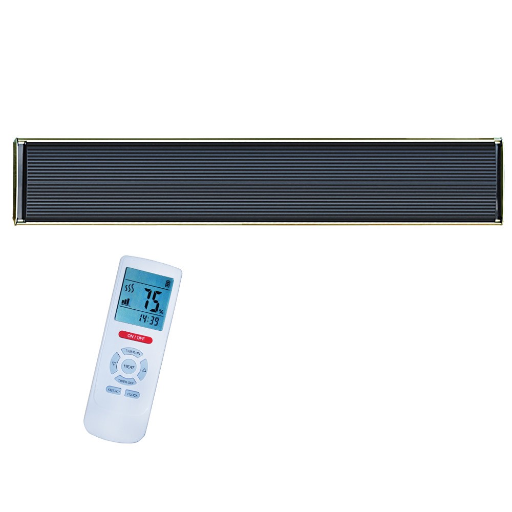 Этот мощный прибор (»1500 Вт) может обогреть комнату площадью 20 м2. В отличие от трёх предыдущих моделей, оснащён колесиками для перемещения, поскольку его масса превышает 5,5 кг. Может применяться не только в качестве напольного, но и настенного устройства. Корпус оснащён влагозащитой и имеет следующие размеры: ширина –75 см, высота – 45 см, толщина – 12 см. Дистанционное управление регулировкой температуры отсутствует. При перегреве отключается.