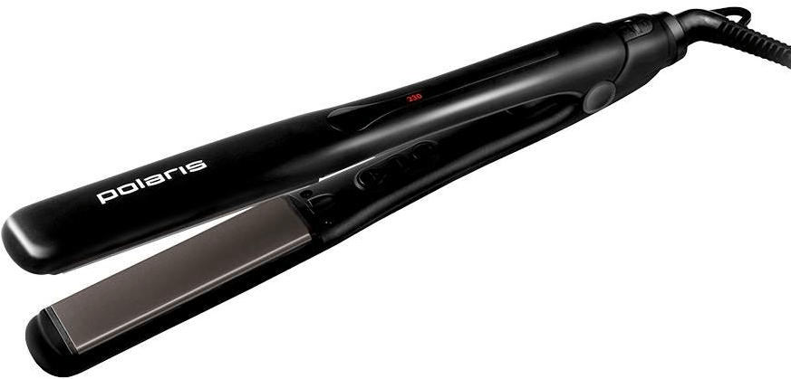 Топ стайлеров для волос продолжает ультратонкий выпрямитель от Polaris. Любимец многих девушек – легкий, быстро греется и шикарно разглаживает непослушные пушистые локоны. Отдельный плюс создателям стайлера за минимизацию вреда от регулярных укладок. Технология двуслойного покрытия пластин керамикой и встроенный генератор отрицательно заряженных ионов защищают волосы от обезвоживания и статики.