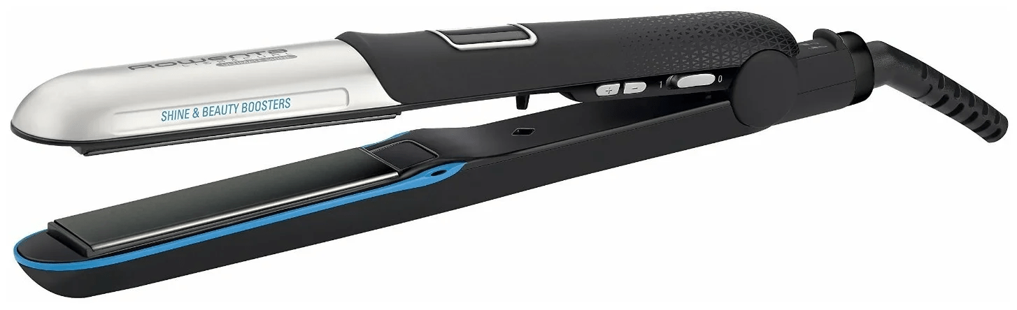 Профессиональный стайлер-выпрямитель для сухих и влажных волос. Используется дома и в салонах красоты. Можно применять для процедуры кератирования. У керамических пластин утюжка специальное покрытие для равномерного распределения температуры по всей поверхности и безупречной гладкости. Вдоль пластин есть отверстия для выхода пара, что позволяет одновременно укладывать и сушить локоны без использования фена.