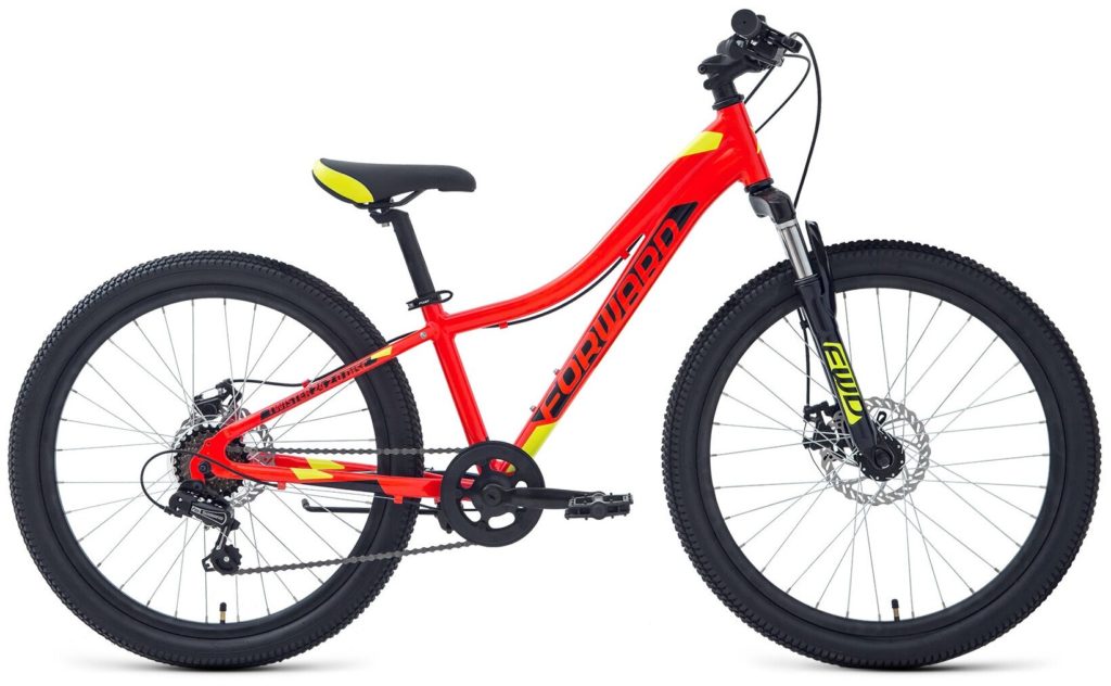 Велосипед получил 12-дюймовую раму из алюминиевого сплава, что говорит о его высоких прочностных качествах, а также о достаточно легком весе в 12.7 кг, что для горного велосипеда является очень удачным показателем. Кроме того, велосипед получил амортизацию Hard Tail, стальную мягкую вилку FWD 158S с ходом 50 мм. Кроме того, в нем используются 24-дюймовые колеса с двойным ободом из алюминиевого сплава от FWD Double Wall, а также надежные покрышки Wanda P1277 24×2.25″ (30TPI).