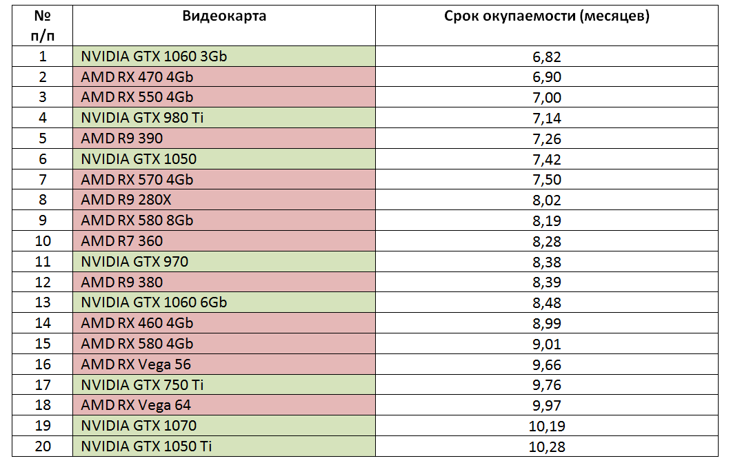 Большое значение имеет рыночная цена GPU-устройства, чем она ниже, тем короче срок окупаемости. С топового видеоускорителя может быть меньше толку, чем с бюджетного из-за его завышенной стоимости. Примером тому могут служить новинки технологической гонки от обеих компаний. Цена RTX 2080 и Radeon VII свела на нет их превосходство в скорости вычислений. Если для геймеров они представляют интерес, то майнеры предпочитают традиционные модели.