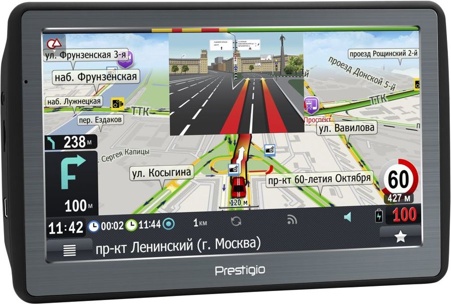- Prestigio – торговая марка, под которой продаются бюджетные девайсы, в том числе, автомобильные. У нее в ассортименте есть два их вида – с диагональю в 5 и 7 дюймов. Немалый экран дает больше возможностей при управлении автотранспортом. Данные устройства делают водителя более мобильным, предлагая ему доступ к Wi-Fi и 3G. В отличие от многих других компаний, здесь есть устройства, работающие как на ОС Android, так и на Microsoft Windows CE. Они отличаются тем, что не просто показывают, а подсказывают наиболее выгодные маршруты, как правильно перестроиться в ряду и быстрее выехать из пробок.