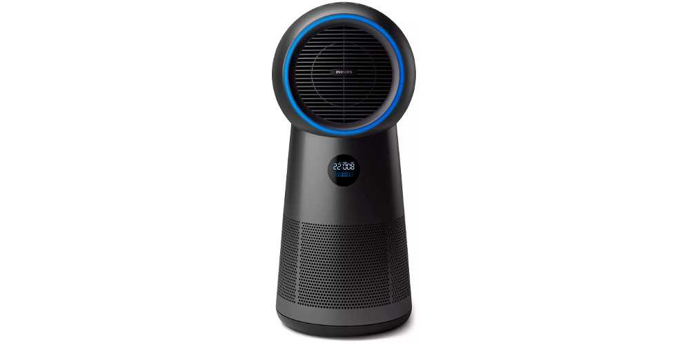 Воздухоочиститель может работать в режиме вентилятора с тремя скоростями вращения и в режиме обогревателя с мощностью 1250 Вт, 1500 Вт или 2200 Вт. Вокруг круглого выходного отверстия светится индикатор синего или красного цвета, подсказывающий, какой именно режим в данный момент включен. При работе на любом из режимов автоматически происходит и очищение воздуха. Управлять работой можно с помощью пульта ДУ, который имеет магнитное основание для возможности закрепления на док-станции.