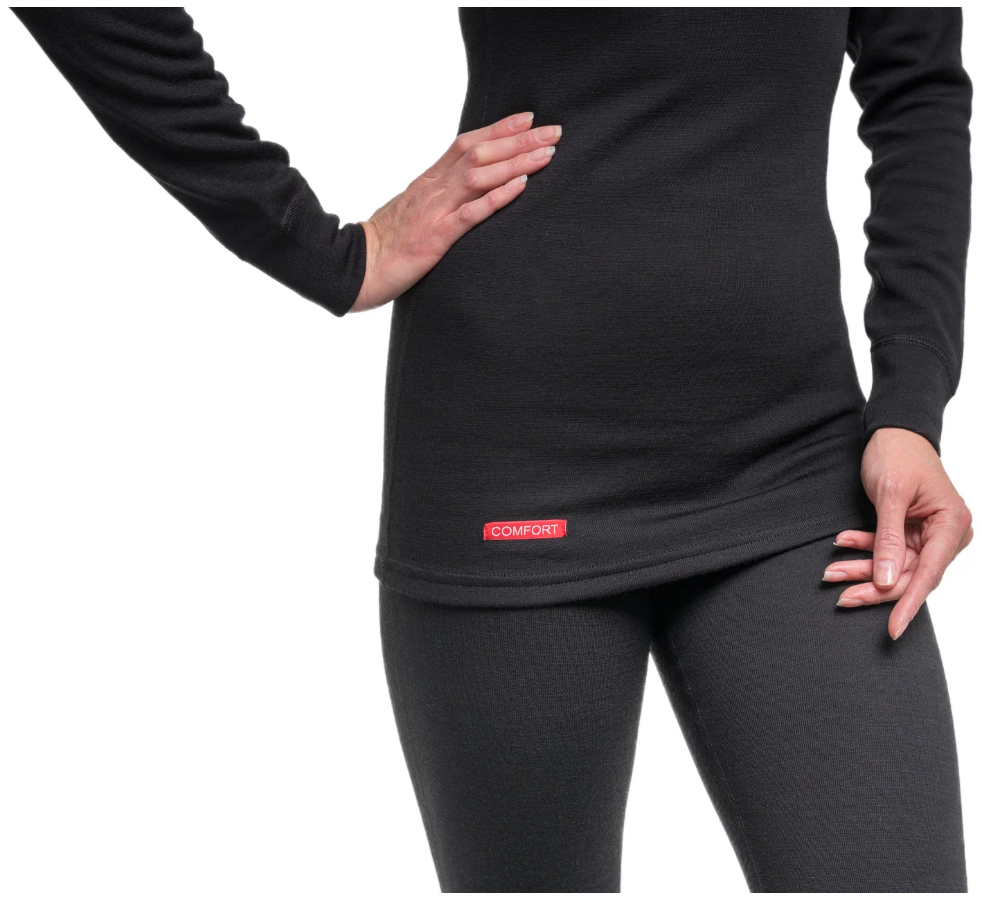 Одним из самых популярных изделий считается натуральная одежда из стопроцентной пряжи мериноса. Благодаря специальной технологии вязки такие модели прекрасно согревают, удерживая тепло внутри. При этом женское термобелье из шерсти мериноса отводит влагу от тела, создавая так называемый сухой комфорт. Еще одним немаловажным отличием выступает гипоаллергенность пряжи. Такие изделия рекомендованы не только для взрослых, но даже для новорожденных. Одновременно с практичностью женское повседневное термобелье очень тонкое, что помогает сохранить легкость в образе.