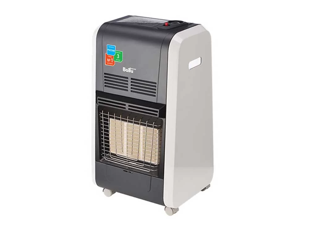 Это хороший газовый обогреватель для большого помещения, так как производитель предназначает Ballu BIGH-55 для площади 60 кв. м. Высокая эффективность службы обеспечена мощностью 4200 Вт, а также 3 рядами форсунки из прочной керамики. Они позволяют расширить область трансформировать тепло в мягкое излучение, которое прогреет все предметы вокруг. Поэтому не стоит устанавливать печь около штор, других хрупких вещей.