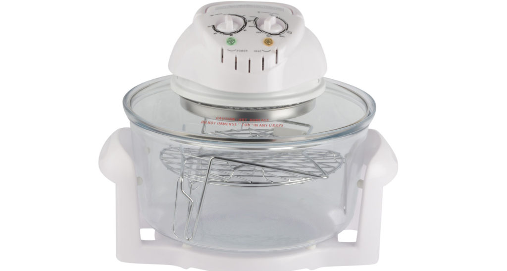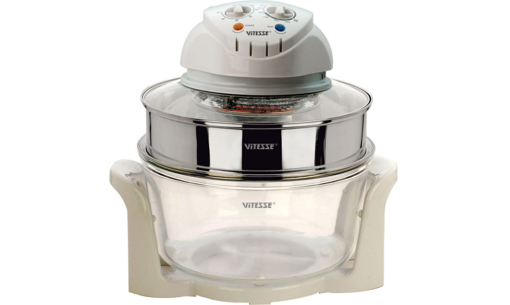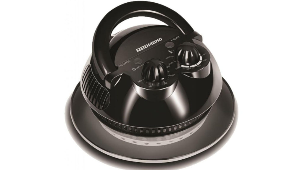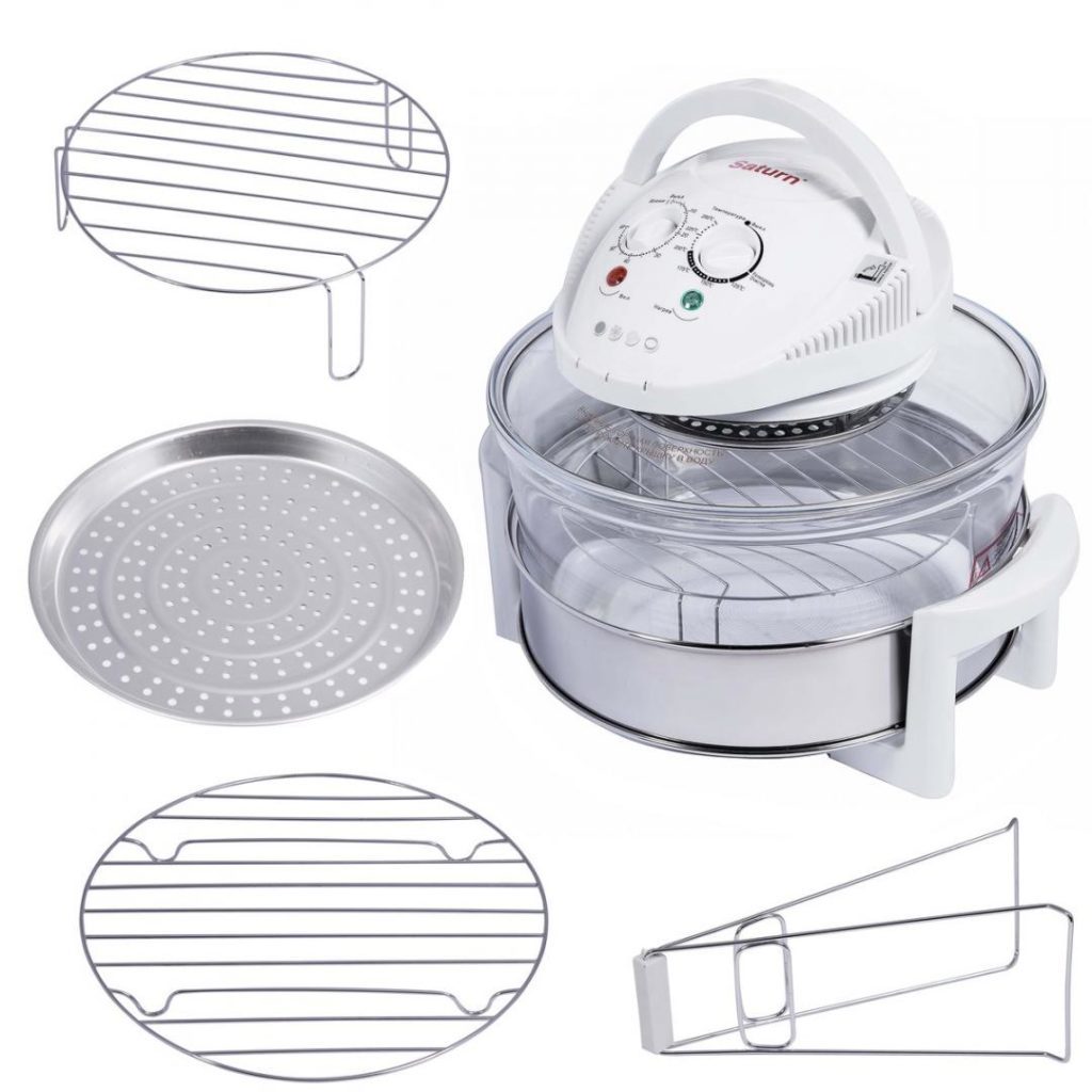 Еще одна вместительная модель с хорошей комплектацией. В нее входит расширительное кольцо, щипцы-ухваты и 2 решетки. Из особенностей стоит отметить наличие 3D тубонагрева, который обеспечивает равномерный нагрев блюда. Судя по отзывам покупателей, в нем можно готовить различную выпечку. Прибор позволяет выставлять температуру разогрева в диапазоне от 60 до 250 градусов по Цельсию. Сетевой шнур у модели съемный, его длина равна 1,2 метрам. Устройство оснащается таймером, позволяющим задавать время готовки в диапазоне до 1,5 часов.