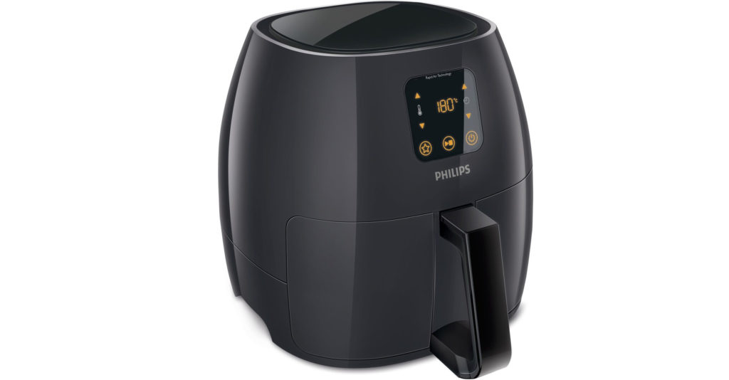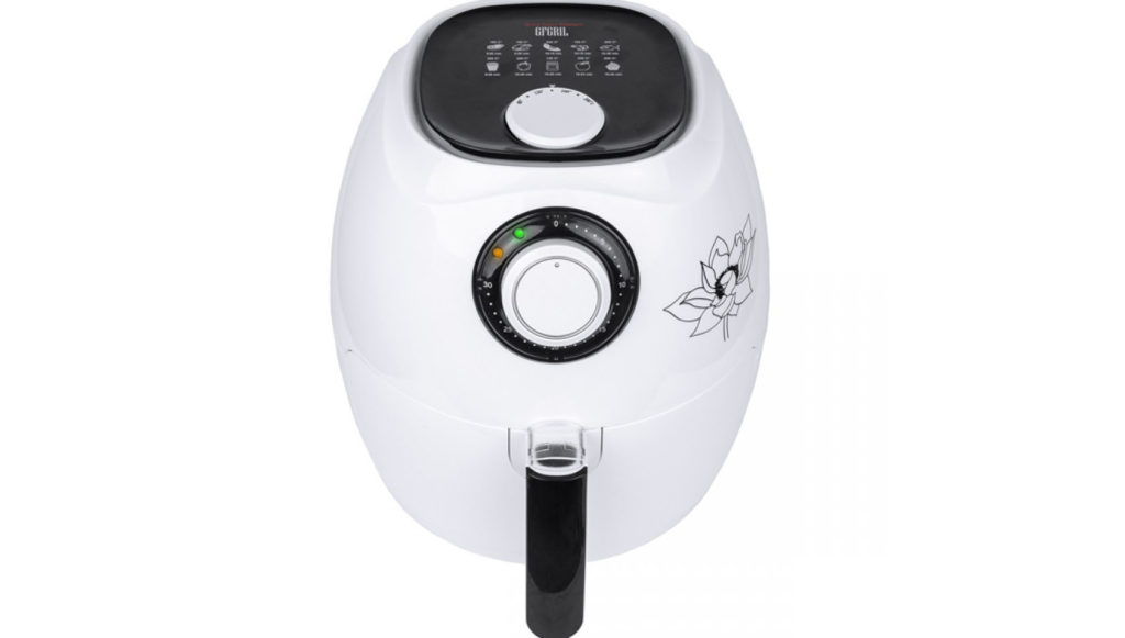 Модель предлагает регулировку температуры во время приготовления от 100 до 200 градусов, таймер (от 1 до 60 минут) и световой индикатор. В отзывах в качестве достоинств упоминают о прорезиненных ножках и простоте ухода за аэрофритюрницей – съемный контейнер имеет антипригарное покрытие. Покупатели подчеркивают, что данная модель на ура справляется с приготовлением мяса, рыбы, овощей и фруктов в панировке. В отличие от аэрогрилей, представленных в бюджетной категории, именно аэрофраю лучше других удаются блюда, требующие при обычном приготовлении большого количества масла – картофель фри, куриные голени и др.