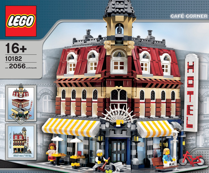 Вместо лицевой части на одну сторону Café Corner смотрит сразу на две и его входная зона находится в углу. Это позволяет всей стене из других совместимых наборов повернуться и даже сформировать кольцо при наличии других угловых комплектов.
