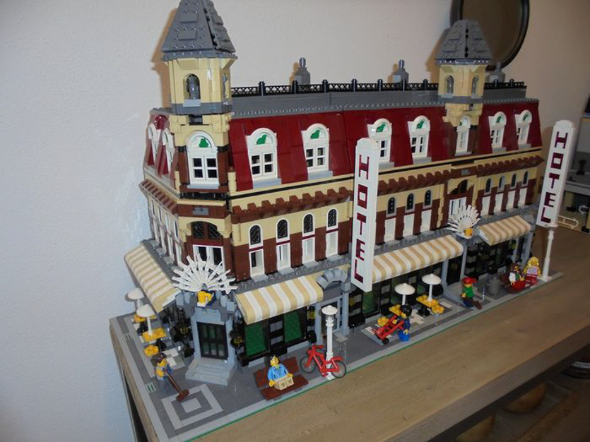 У Lego есть серия Modular Buildings, конструкторы которой выходят приблизительно раз в год и умеют стыковаться друг с другом, создавая панель из домиков по аналогии стены салонов на диком западе.