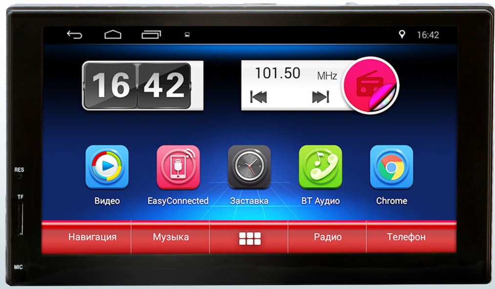 Вариант с великолепным звучанием и 7-дюймовым экраном функционирует на базе Андроид версии 4.4. Производитель предусмотрел тут фирменный центральный процессор, за счет которого аппарат работает довольно хорошо и без зависаний.